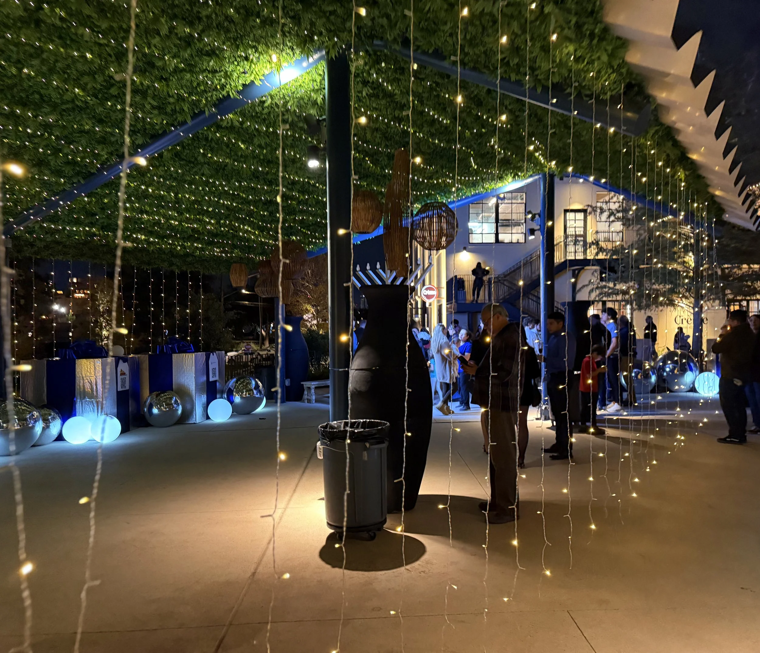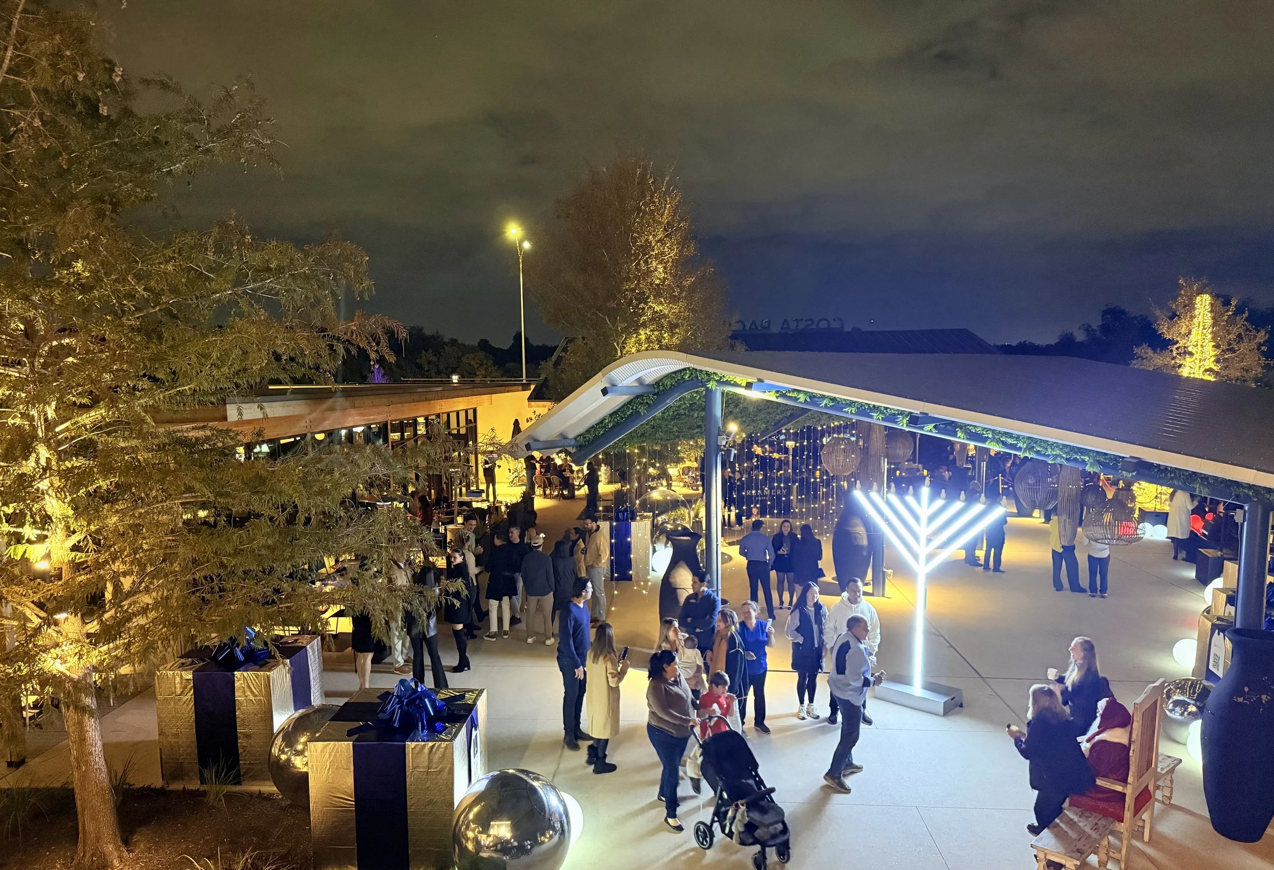 Parents, children, and holiday lovers of all ages congregated upon the Creamery’s festively-lit plaza to witness an impressive tree lighting ceremony. Massive, decorative gift boxes and whimsical mirrored baubles welcomed guests, while a band onstage played jazzy holiday standards—one talented act among many over the course of the evening—and a picture-perfect Santa Claus chatted and sat for photos with eager attendees nearby. Just beyond Santa’s queue, rhetorically-minded children were encouraged to write their very own letters to the man at a “Letters to Santa” table, and hot chocolate and cookies tickled the taste buds, and warmed the spirits.